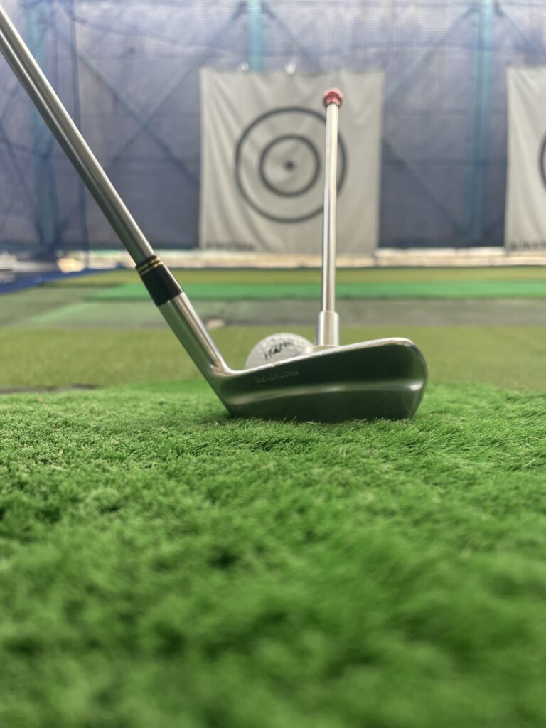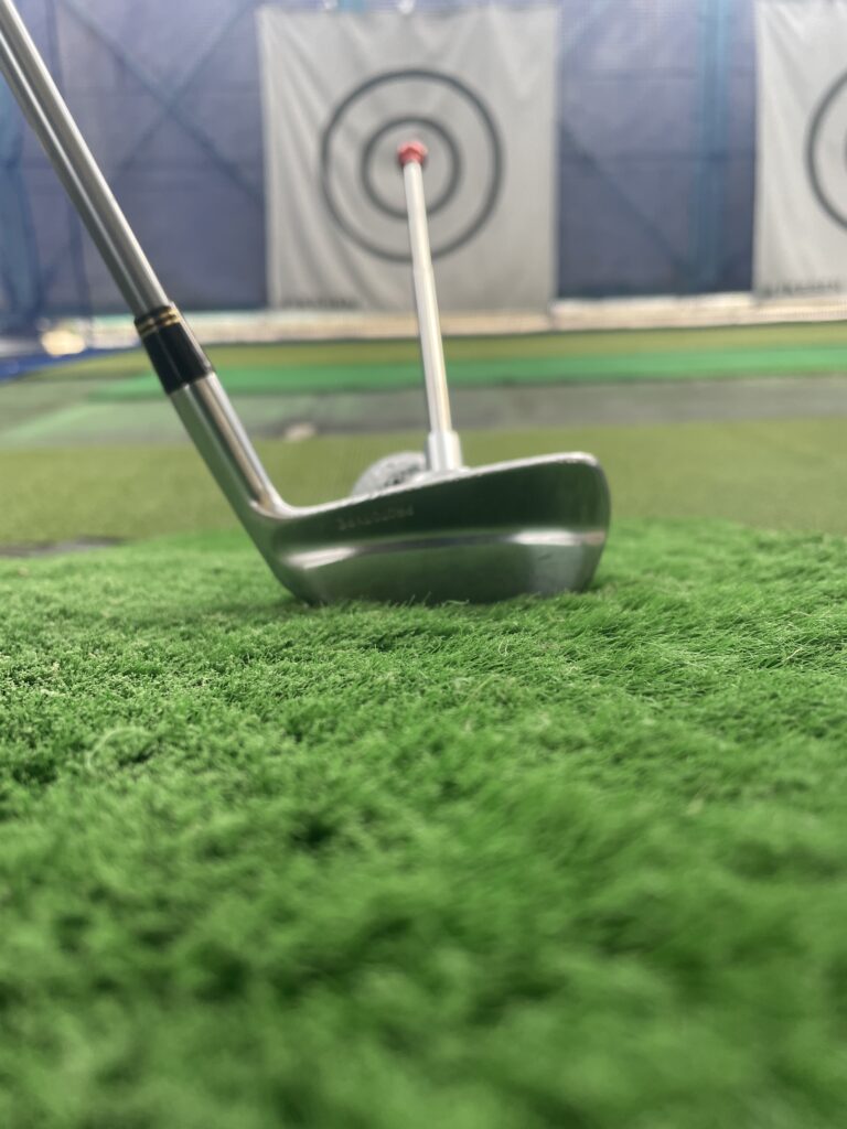 7アイアンで少しフェースを開いて