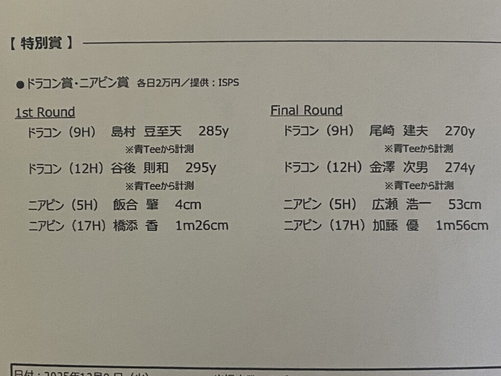 賞金とニアピン賞で